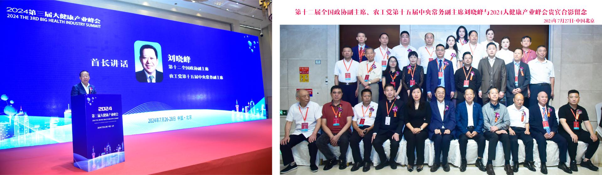 第十二届全国政协副主席、农工党第十五届中央常务副主席刘晓峰出席峰会,亲切接见了与会贵宾和全体嘉宾,并发表开幕讲话,对中国大健康产业的未来发展寄予厚望。