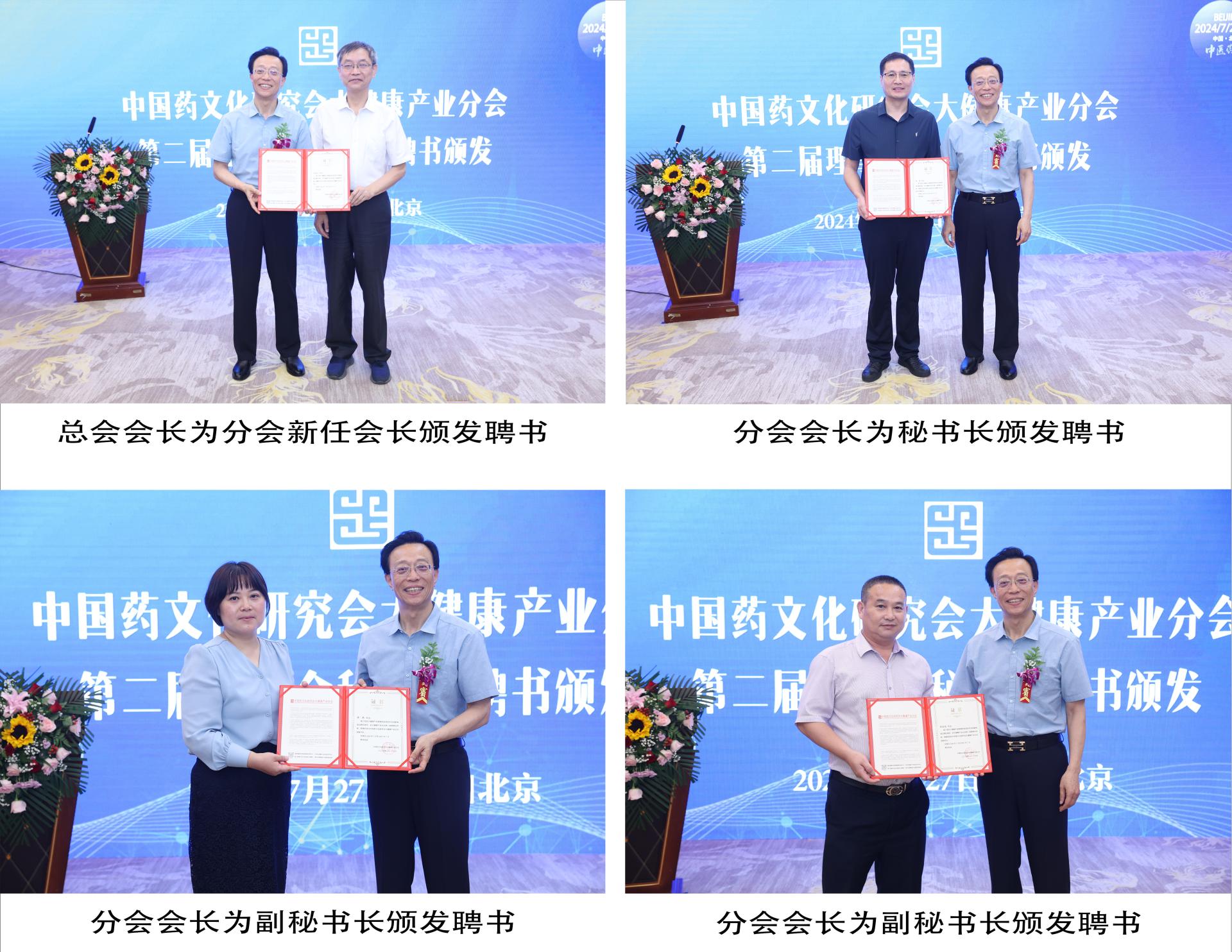 中国药文化研究会会长禹同生为新任会长、北京中医药大学教授王林元颁发聘书,王林元会长为秘书长尚军、副秘书长华燕、尚友龙颁发聘书,同时为新一届的专家、顾问、副会长、理事颁发了聘书。中国药文化研究会会长禹同生为新一届理事会副会长单位颁发了会员单位牌匾,这是对他们的辛勤付出和无私奉献致以崇高的敬意。