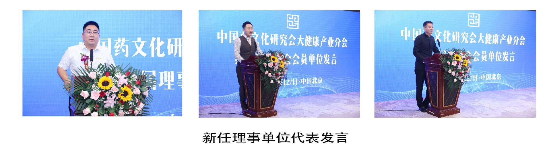 中国药文化研究会会长禹同生随后发表了重要讲话,对分会过去的工作给予了充分肯定,并对新一届理事会的工作提出了殷切期望。新任部分理事会成员代表也相继发言,分享了自己的心得和体会,表达了对分会未来发展的信心和期待。